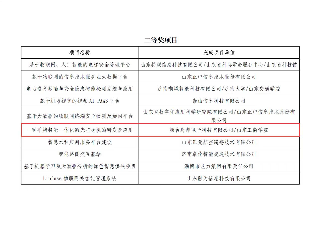 煙臺恩邦電科技有限公司“手持便捷式大功率高精度激光打標機”獲“創(chuàng)客中國”山東省中小企業(yè)創(chuàng)新創(chuàng)業(yè)大賽 優(yōu)勝獎
